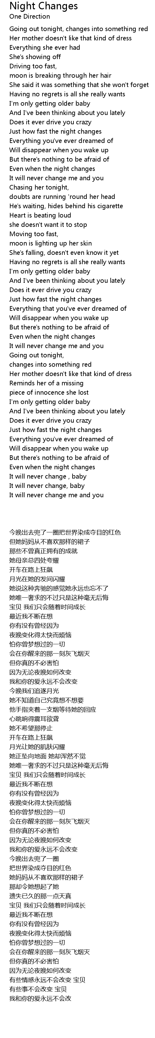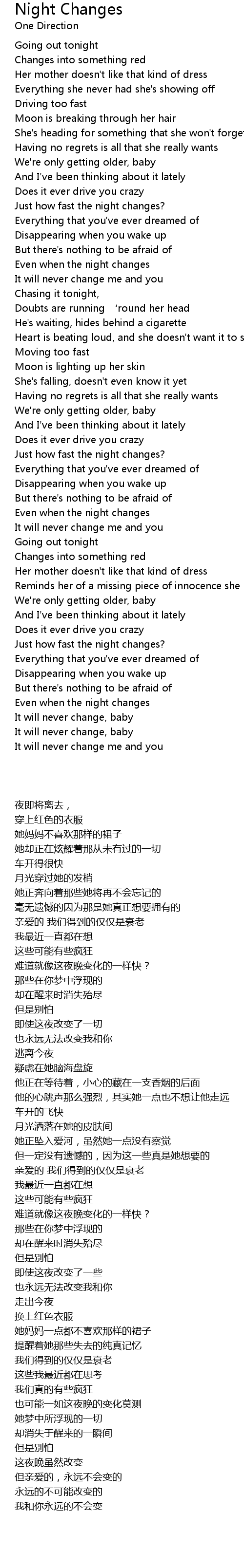Your Night Changes Lyrics pic are prepared in this web. Night Changes Lyrics are a topic that is being searched for and appreciated by netizens today. You can Get the Night Changes Lyrics here. Download all royalty-free images.